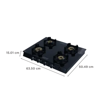 Croma Toughened Glass Top 4 Burner Automatic Gas Stove (Flame proof pan support, Black)