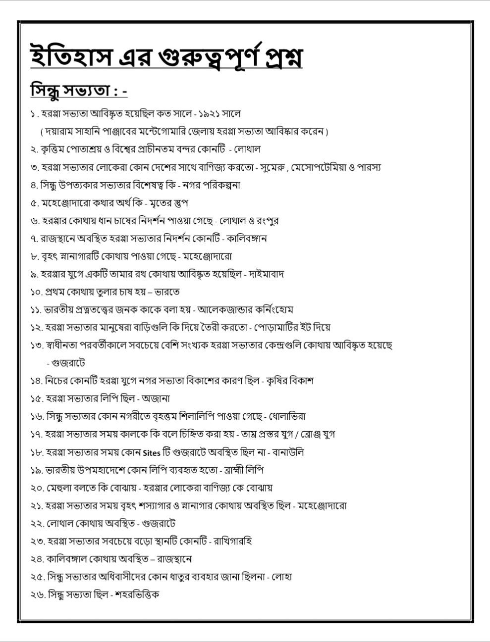Indus Valley Civilization all Important Questions Covered here all Students must need to purchase this notes.