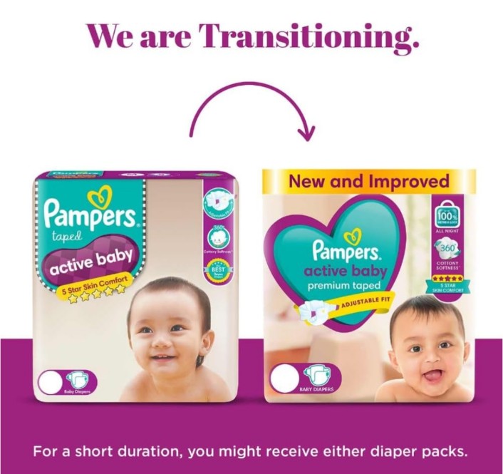 About this item Pampers Active Baby 5 Star Skin Protection- Specially designed diapers for baby’s comfort Adjustable Fit- Taped diapers which you can make fit or loose based on your baby’s size Stretchy Waist & Sides- Stretchable soft material to fit snugly around waist & side Our Best Pampers Diapers- Trusted protection of Pampers, our best amongst India taped diapers 360 Degree Cottony Softness- All-around cotton-like softness for baby’s delicate skin. Product does not contain cotton Up to 12 hrs absorption- Our Magic Gel technology to keep baby dry all night Extra Dry Layer- Quickly absorbs & spreads wetness to prevent leakage