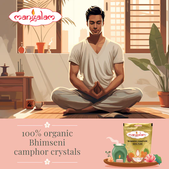 USAGE: Diffuse Mangalam Bhimseni Camphor on an Aroma diffuser / Aroma burner / Kapur dani for a sweet fragrance that will change energy levels and create a positive aura around you and your home WHY DIFFUSE BHIMSENI CAMPHOR: It contains 100% Organic ingredients that have a calming effect on the mind , repels mosquitos and provides a refreshing fragrance which fills your life with positivity and happiness HOW TO CHECK THE PURITY OF BHIMSENI CAMPHOR: Pure Bhimseni Camphor evaporates completely and does not leave behind any residue or ash when completely diffused NO DANGEROUS CHEMICALS: Mangalam Bhimseni Camphor is Pure and is made from 100% camphor, which is derived from the pine tree. Locally available camphor can have fillers and other chemicals which are cancer causing and dangerous to breathe. EASY TO DIFFUSE – LONG LASTING FRAGRANCE: The convenient size and shape of Mangalam Bhimseni Camphor, makes it easy to grip. Moreover, since the product is pure camphor, it diffuses instantly on an Aroma diffuser / Aroma burner / Kapur dani and does not require much effort. Net Weight (when packed): 50g Country of Origin :India Manufactured, Packaged & Marketed by : Mangalam Organics Limited, Village Kumbhivali, Sarvoli Kharpada Road, Khalapur Pincode : 410202 For Consumer Complaints : T: +912249204089 | E: info@mangalamorganics.com Best Before : 10 years from date of Packaging