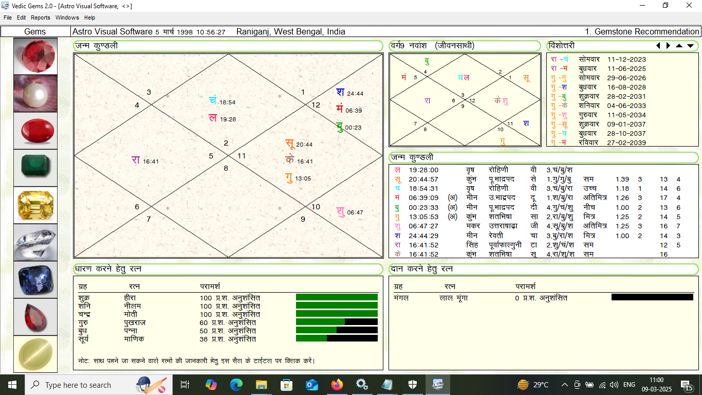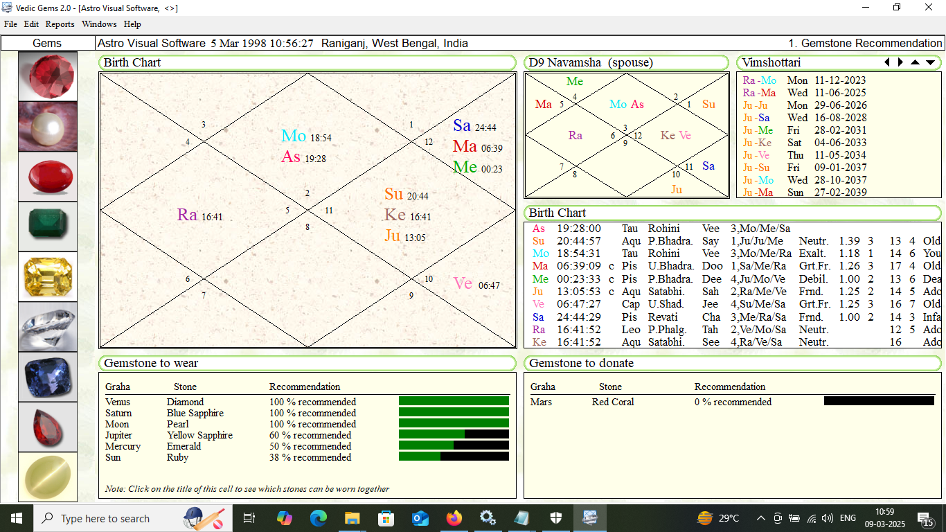 Vedic Gems 2.0 for Windows , is the much appreciated tool for Gemstone Recommendation based on classical Vedic Astrology scriptures. With this software, you can not only have a Gem Recommendation based on planetary position of your natal chart and according to your problem, but you also get to study the astrological parameters lying behind the recommendation and physical properties of the primary and secondary gemstones.