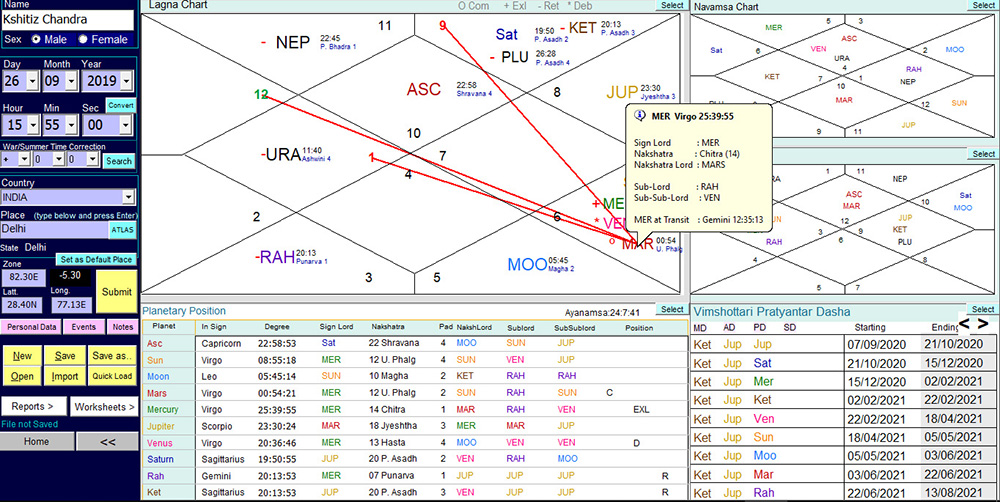 - Time Rectification: Edit date time on any worksheet, or print report quickly with intervals of hours, minute, second, days etc to rectify time and study various planetary movements on any page.